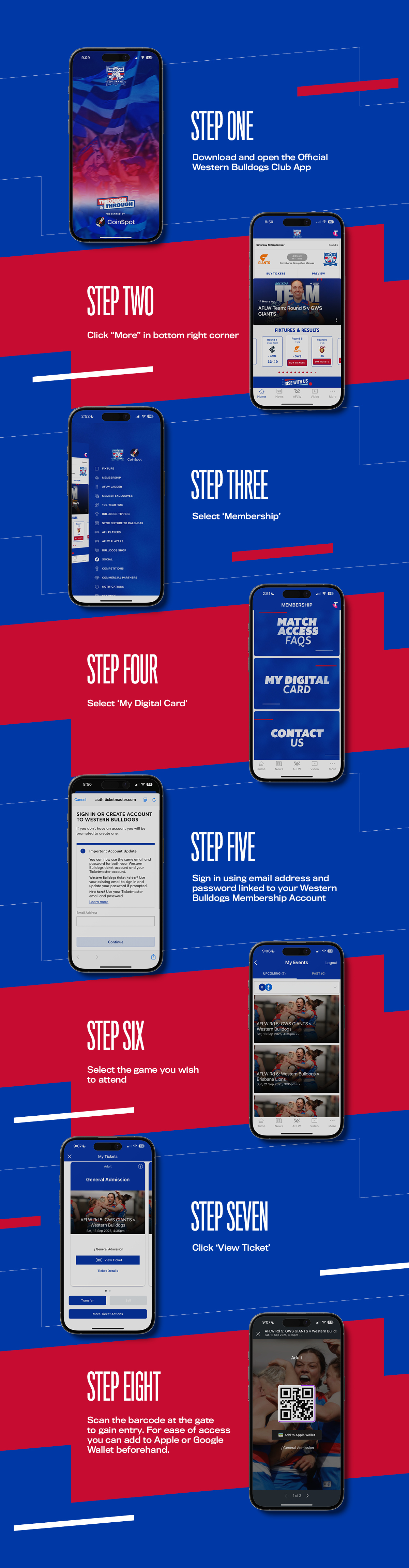 To use your digital card you first need to download the Western Bulldogs App. Follow the instructions below for your preferred mobile device.